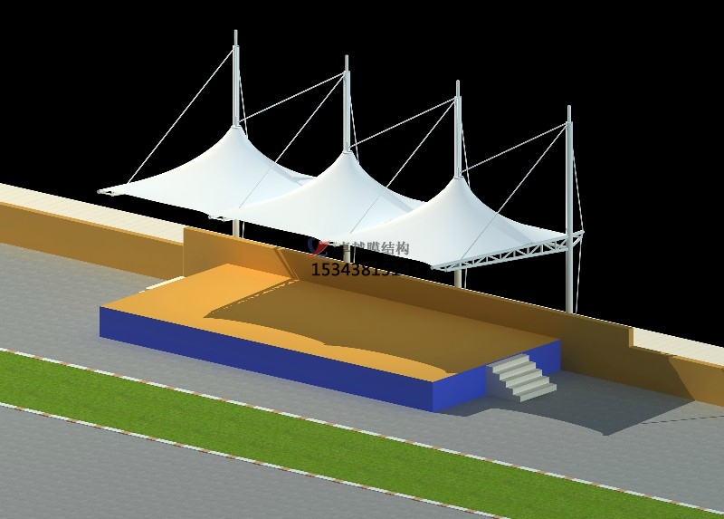 膜結(jié)構(gòu)遮陽棚由立柱和頂棚構(gòu)成。立柱多由金屬合金制作,如鋼,鋁等,質(zhì)量輕且質(zhì)地硬,頂棚則是由膜結(jié)構(gòu)材料制成。
