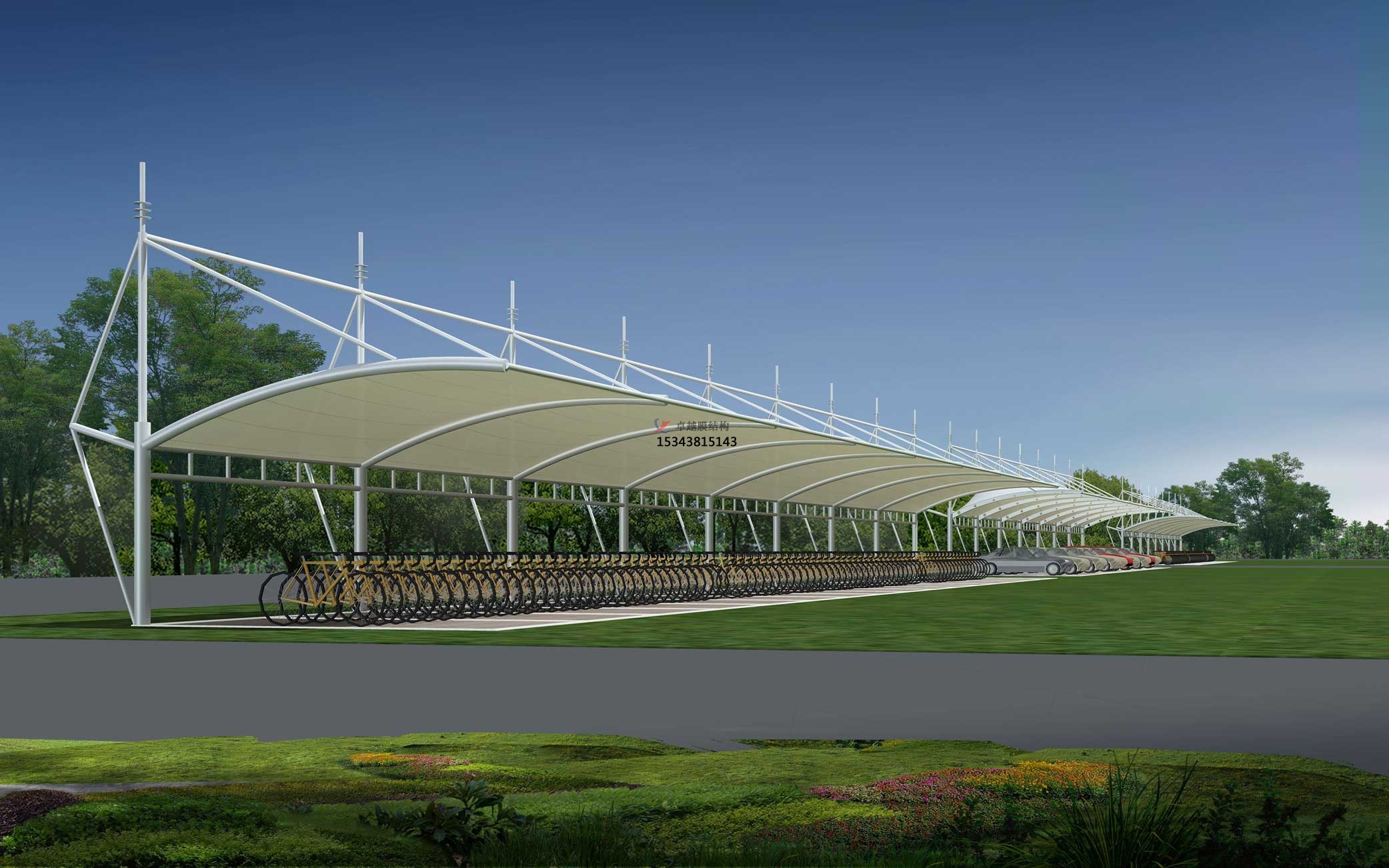 結(jié)構(gòu)形式:骨架式張拉膜充電樁車棚