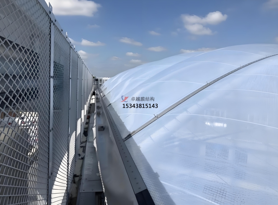 不僅如此,這種膜還具有自清潔功能,使灰塵不易附在其表面,清潔周期大約為5年。這種材料另一大優(yōu)點就是可在現(xiàn)場預制成薄膜氣泡,方便施工和維修。另外成本合理也是其極具競爭力的另一優(yōu)勢,覆蓋層加上結構的費用只有玻璃的一半,而使用壽命卻長達25年。