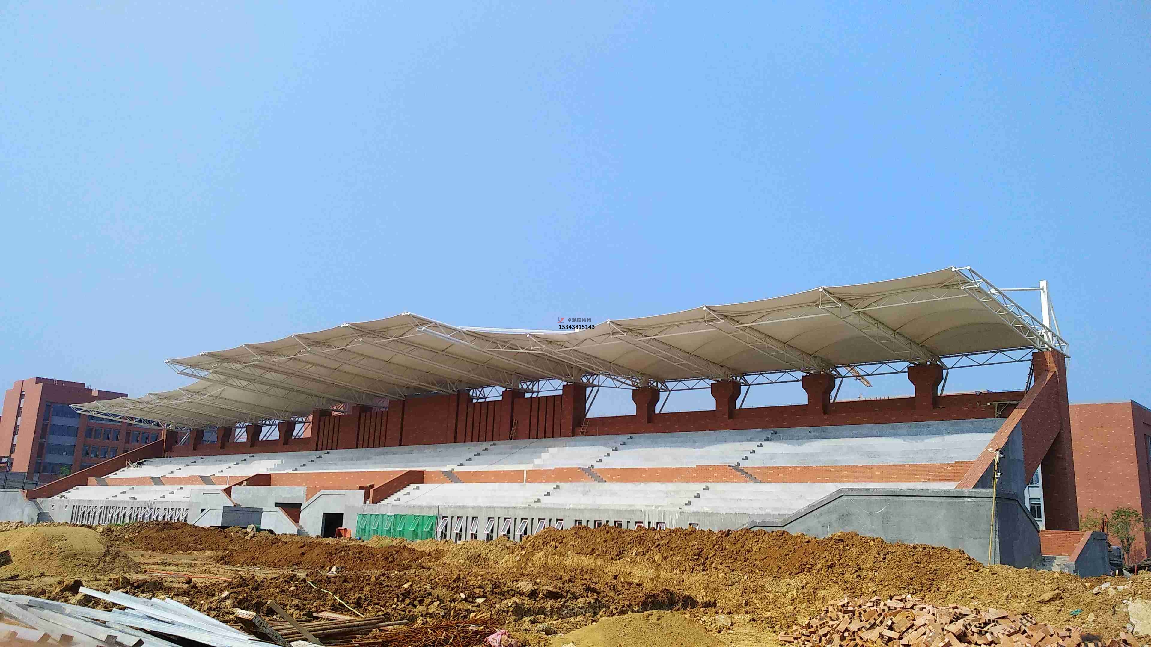 膜結(jié)構(gòu)看臺(tái)也叫膜結(jié)構(gòu)看臺(tái)遮陽(yáng)棚、罩棚、雨棚,主要是在看臺(tái)上方加上一個(gè)膜結(jié)構(gòu)制作的遮蔽結(jié)構(gòu),可以起到遮陽(yáng)避雨的功能,自重輕,具有良好的受力特點(diǎn)——成為大跨度空間結(jié)構(gòu)的主要形式之一,它的應(yīng)用也很廣泛。但是膜結(jié)構(gòu)在施工的時(shí)候有些地方要注意,今天鄂州膜結(jié)構(gòu)公司簡(jiǎn)單的為大家講解一下,希望對(duì)大家有所幫助!