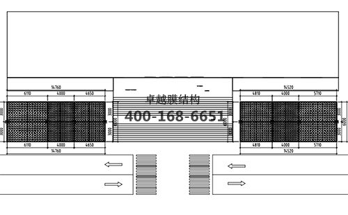 本工程膜材采用白色高端國產(chǎn)膜材PTFE高自潔環(huán)保建筑膜材A級防火,鋼結(jié)構(gòu)采用更好的標(biāo)準(zhǔn)Q235B鋼材,表面采用酚醛底漆處理,面漆采用白色鋼結(jié)構(gòu)專用快干磁漆。