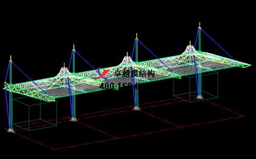 本工程膜材采用白色高端國產(chǎn)星益達PVDF高自潔環(huán)保建筑膜材和ETFE高端膜材,鋼結(jié)構(gòu)采用更好的標(biāo)準Q235B鋼材,表面采用酚醛底漆處理,面漆采用白色鋼結(jié)構(gòu)專用快干磁漆。