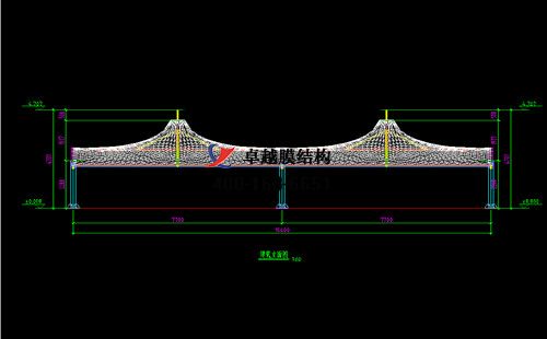 本工程膜材采用白色高端國產(chǎn)星益達PVDF高自潔環(huán)保建筑膜材,鋼結構采用更好的標準Q235B鋼材,表面采用酚醛底漆處理,面漆采用白色鋼結構專用快干磁漆。