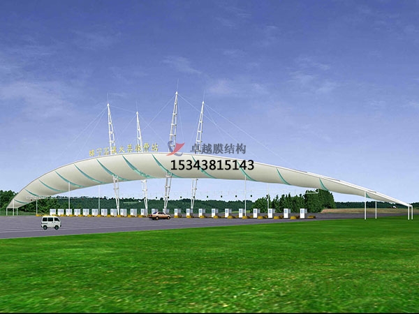 收費站頂棚運用膜結(jié)構(gòu)來設(shè)計建造十分可取,收費站廣場空間跨度大,屬于開放空間,通過膜材料結(jié)合鋼柱支撐的膜結(jié)構(gòu)能使用收費站整體環(huán)境起到美化作用。同時膜結(jié)構(gòu)具備功能上的諸多優(yōu)點,相信不久的將來,收費站膜結(jié)構(gòu)頂棚會越來越常見。