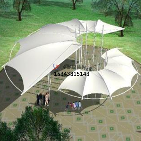 膜結(jié)構(gòu)景觀施工中,索、附屬鋼結(jié)構(gòu)在施工完成之后對(duì)每處單元用站儀進(jìn)行相對(duì)位置測(cè)量, 依據(jù)實(shí)際的測(cè)量數(shù)據(jù)進(jìn)行裁剪設(shè)計(jì)膜單元。因該景觀工程索膜結(jié)構(gòu)為空間曲面, 裁剪就是用平面膜材來(lái)表示空間曲面, 因此裁剪難度很大, 通過(guò)拉伸試驗(yàn)進(jìn)行準(zhǔn)確確定。隔板下料完成后,根據(jù)排水方向和隔板接頭確定熱熔方案。