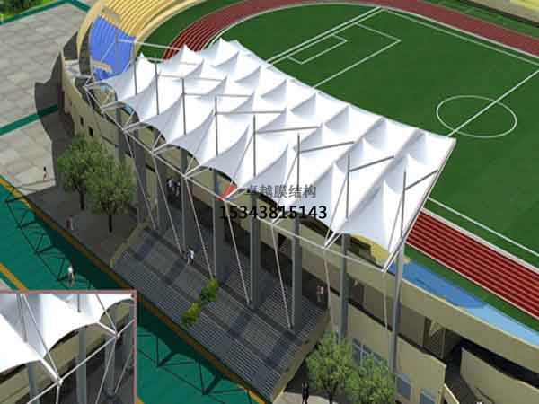 3.由于膜材的自身特性,在燈光的照射下能形成絢麗繽紛的美景.膜結(jié)構(gòu)看臺它不僅可以提供遮陽擋雨的空間,更由于這種輕盈優(yōu)美的造型能給人們帶來時尚、輕松的休閑感受.