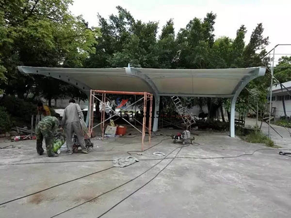 《膜結構充電樁車棚施工圖片》