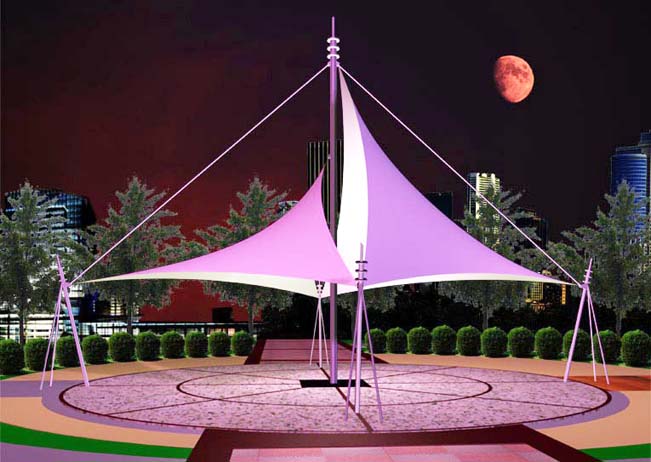 景觀膜結(jié)構(gòu)是用高強(qiáng)度柔性薄膜材料經(jīng)受其它材料的拉壓作用而形成的穩(wěn)定曲面,能承受一定外荷載的空間膜結(jié)構(gòu)形式。其造型自由、輕巧、柔美,充滿力量感、阻燃、制作簡(jiǎn)易、安裝快捷、節(jié)能、使用安全等優(yōu)點(diǎn),因而使索膜結(jié)構(gòu)它在世界各地受到廣泛應(yīng)用,景觀膜結(jié)構(gòu)建筑作為新的建筑形式于本世紀(jì)五十年代在國(guó)際上開(kāi)始出現(xiàn),至今已有四十多年的歷史,特別是到了七十年代以后膜結(jié)構(gòu)的應(yīng)用得到了迅速發(fā)展。景觀膜結(jié)構(gòu)的出現(xiàn)為建筑師們提供了超出傳統(tǒng)建筑模式以外的新選擇。膜結(jié)構(gòu)一改傳統(tǒng)建筑材料而使用膜材,其重量只是傳統(tǒng)建筑的三十分之一。而且景觀膜結(jié)構(gòu)可以從根本上克服傳統(tǒng)結(jié)構(gòu)在大跨度(無(wú)支撐)建筑上實(shí)現(xiàn)時(shí)所遇到的困難,可創(chuàng)造巨大的無(wú)遮擋的可視空間。