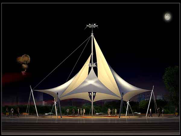 第三點,膜結構建筑內(nèi)部采用Φ38鍍鋅圓管與建筑框架焊接,加強棚頂部強度,可讓棚內(nèi)感覺寬敞明亮,靠車輛輕松方便,完全符合建筑制作要求規(guī)范;