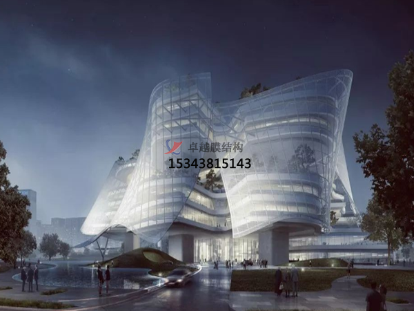 膜結構建筑具有藝術性,充分發(fā)揮建筑師的想象力,又體現(xiàn)結構構件清晰受力之美。由于膜材具有一定的透光率,白天可減少照明強度和時間,能很好的節(jié)約能源。同時夜間彩燈投射形成的絢爛景觀也能達到很好的宣傳效益。
