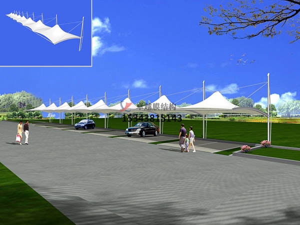 隨著都市現(xiàn)代步伐的加快,汽車成為任何一個都市不可缺少的交通工具。我國由于汽車工業(yè)高速發(fā)展,城市的汽車擁有量成倍上升,但城市建設(shè)規(guī)劃沒能盡快適應(yīng)這一發(fā)展要求,常常是車無停放之地。所以在建設(shè)群規(guī)劃時就應(yīng)充分考慮停車場的問題,吧停車場的建設(shè)和規(guī)劃當(dāng)成現(xiàn)代城市建設(shè)規(guī)劃的重要組成部分,變得越來越重要。鑒于此,膜結(jié)構(gòu)造型的停車棚在停車場建設(shè)中也以其優(yōu)美的造型和實在的功能擔(dān)當(dāng)重要角色。