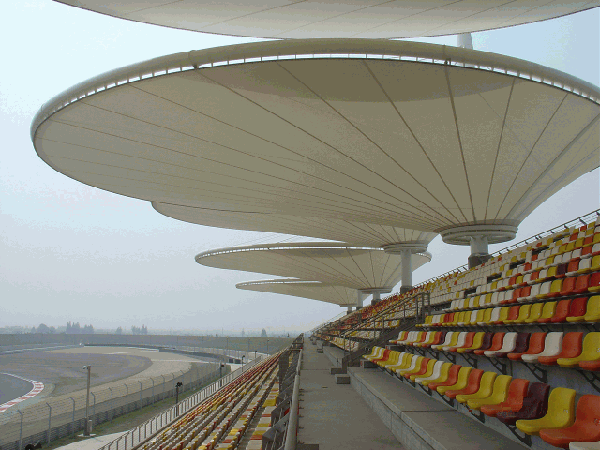 幾何協(xié)調(diào)的變形意味著在主動(dòng)索張拉過(guò)程中各構(gòu)件同時(shí)受力,產(chǎn)生幾何協(xié)調(diào)變形更終達(dá)到初始狀態(tài),在初始狀態(tài)索結(jié)構(gòu)的預(yù)張力分布既滿足平衡條件同時(shí)又滿足幾何協(xié)調(diào)條件。下圖的張弦梁結(jié)構(gòu)下弦索張拉,所有中部索同時(shí)受力及變形協(xié)調(diào)。