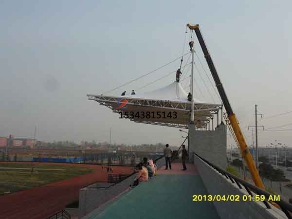 、膜面的尺寸,膜面尺寸的測量并不是在現(xiàn)場進行,而是在拼接廠完成的。因為要保證它的整潔性與精確性,所以必須先在車間內(nèi)對其測量,在這之后再進行折疊與裝運。在施工的時候只需要直接將其展開就可以了。所以如果尺寸確定不到位的話,就會浪費很多的時間,同時也會影響建筑的質(zhì)量。