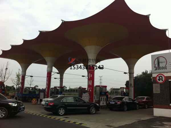 6、展開加油站罩棚設(shè)計(jì)安裝的膜體前,在平臺上鋪設(shè)臨時(shí)布料,以保護(hù)膜材不被損傷及膜材清潔,嚴(yán)格按確定的順序展開膜體。打開包裝前應(yīng)校對包裝上的標(biāo)記,確認(rèn)安裝部位,并按標(biāo)記方向展開,盡量避免展開后的膜體在場內(nèi)移動(dòng)。