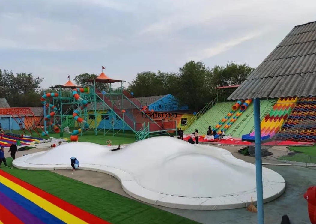 在現(xiàn)代游樂設(shè)施領(lǐng)域,蹦蹦云膜結(jié)構(gòu)憑借其獨特的造型和創(chuàng)新設(shè)計,成為景區(qū)、親子樂園及商業(yè)空間的熱門選擇。這種以 “云朵” 為靈感的互動裝置,不僅為兒童提供了安全有趣的活動場地,更通過巧妙的結(jié)構(gòu)設(shè)計與材料科技,重新定義了戶外游樂設(shè)施的美學與功能性。