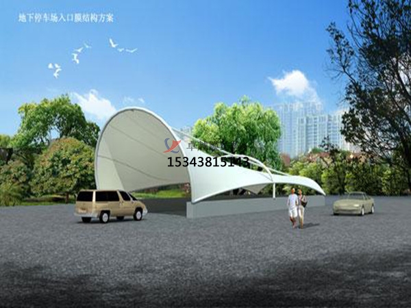 6、景觀設(shè)施:膜結(jié)構(gòu)以其特殊的建筑表現(xiàn)手法,主要體現(xiàn)在造型、漫射透光性、豐富多彩,可廣泛應(yīng)用于入口、標(biāo)志性小品 、步行街、停車場等,其他建筑特性無須較高要求。
