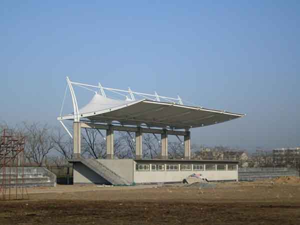 張拉膜看臺(tái)主要用于各類地方體育場(chǎng)主席臺(tái)雨棚,各類學(xué)校體育場(chǎng)看臺(tái)雨棚遮蓋,我公司是國內(nèi)較早從事大懸挑張拉膜結(jié)構(gòu)看臺(tái)設(shè)計(jì)施工的專業(yè)廠家,下面介紹一下我們?cè)诮B興市周邊縣市完工的一些張拉膜看臺(tái)設(shè)計(jì)施工案例,我公司先后在紹興周邊承接了紹興文理學(xué)院張拉膜看臺(tái)雨棚、紹興職業(yè)技術(shù)學(xué)院張拉膜看臺(tái)罩棚、浙江農(nóng)業(yè)商貿(mào)職業(yè)學(xué)院張拉膜看臺(tái)遮陽棚等設(shè)計(jì)施工項(xiàng)目,簡(jiǎn)介如下: