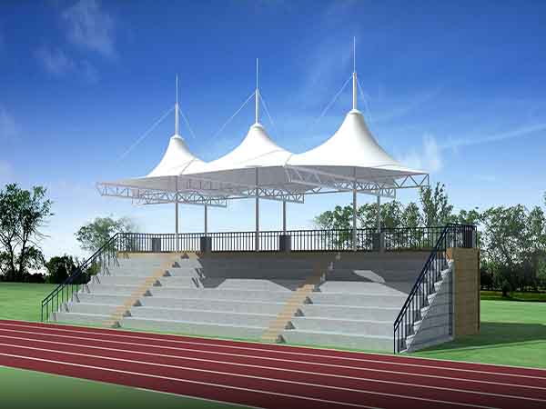 張拉膜看臺主要用于各類地方體育場主席臺雨棚,各類學校體育場看臺雨棚遮蓋,我公司是國內(nèi)較早從事大懸挑張拉膜結構看臺設計施工的專業(yè)廠家,下面介紹一下我們在景德鎮(zhèn)市周邊縣市完工的一些張拉膜看臺設計施工案例,我公司先后在景德鎮(zhèn)周邊承接了景德鎮(zhèn)陶瓷大學張拉膜看臺雨棚、景德鎮(zhèn)學院張拉膜看臺罩棚、景德鎮(zhèn)陶瓷職業(yè)技術學院張拉膜看臺遮陽棚等設計施工項目,簡介如下: