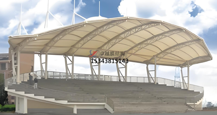 膜結(jié)構(gòu)舞臺(tái)廣泛應(yīng)用于大型演出、體育賽事、展覽展示等場(chǎng)合。在大型演出和體育賽事中,可用于搭建臨時(shí)看臺(tái)、運(yùn)動(dòng)員休息區(qū)等,為觀眾和運(yùn)動(dòng)員提供舒適空間。在展覽館、會(huì)展中心等場(chǎng)所,可作為展示空間的覆蓋或支撐結(jié)構(gòu),營(yíng)造出獨(dú)特的展示環(huán)境。例如,北京奧運(yùn)會(huì)開(kāi)幕式上的臨時(shí)看臺(tái)、國(guó)內(nèi)外音樂(lè)節(jié)和戲劇節(jié)的舞臺(tái)設(shè)計(jì),都采用了膜結(jié)構(gòu),以其獨(dú)特的視覺(jué)效果和靈活多變的布局,為觀眾帶來(lái)沉浸式體驗(yàn)。如音樂(lè)會(huì)、戲劇表演、舞蹈演出等,其獨(dú)特造型和光影效果能提升演出視覺(jué)效果,增強(qiáng)觀眾沉浸感。