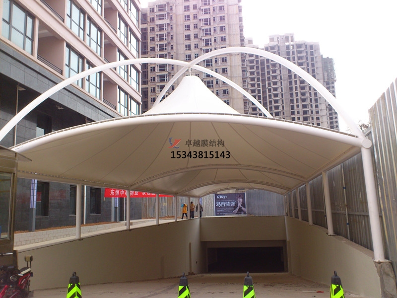 膜結(jié)構(gòu)雨棚屬于軟性材料,本身自動輕,耐高溫、抗紫外線,使用壽命長達15至20年。