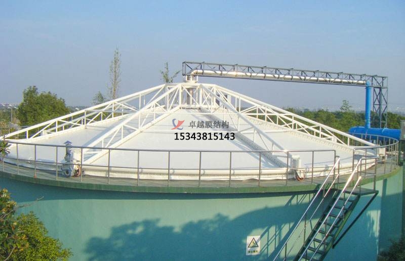 依據(jù)生活及城市污水處理的特點(diǎn),在城市污水處理廠加蓋除臭中,大型池體的封閉體系選擇尤為關(guān)鍵,鋼支持反吊膜的技術(shù)充分發(fā)揮了結(jié)構(gòu)骨架與膜材料的特性結(jié)合。專門研發(fā)并生產(chǎn)符合該領(lǐng)域的相關(guān)膜材,在具體工程中已大量使用,其安裝快捷、檢驗(yàn)方便、形式靈活多樣、自潔性好、經(jīng)濟(jì)效果顯著。