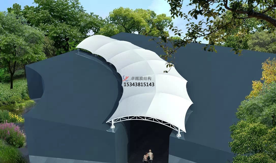 對于張拉膜結構頂棚,任何附加的支撐和修飾都是多余的,其結構本身就是造型;換句話說,不符合結構的造型是不可能的,因為那樣的薄膜不是飄動的就是缺乏穩(wěn)定性的。張拉膜結構的美就在于其“力”與“形”的完美結合。夜間光影投射效果:其中更常見的形式就是景觀張拉膜,景觀張拉膜能提供豐富多彩的用途,并與園林景觀溶為一體。創(chuàng)造出讓人們盡情享受的快樂空間。充分展示了結構構件清晰受力的藝術之美,它巧妙的整合周圍的環(huán)境,給人們一種高貴典雅、浪漫溫馨之感。張拉膜結構以其輕盈飄逸的造型、柔美并帶有力量的曲線和大跨度和大空間的鮮明個性和標識性,應用于城市小品設計中。多種用途都表明,張拉膜的造型建筑更有簡約性使其不能隱藏任何設計缺陷,張力的松弛或是不連續(xù)都會被充分暴露出來,而且會導致膜面褶皺及變形,降低了結構的使用壽命。