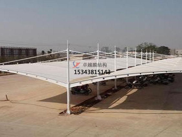 自潔性好。膜結(jié)構(gòu)車棚使用的膜材均有極好的自潔性,比如:PVDF膜材表面是塑料,不易沾染灰塵等污漬。