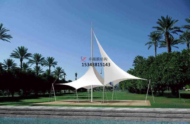 張拉膜景觀建筑的設(shè)計(jì)應(yīng)根據(jù)建筑的使用特點(diǎn)和總體布局要求,合理確定排水坡度和位置,保證膜面排水通暢;在積雪較重的地區(qū),應(yīng)采用較大的薄膜坡度和必要的防雪措施。