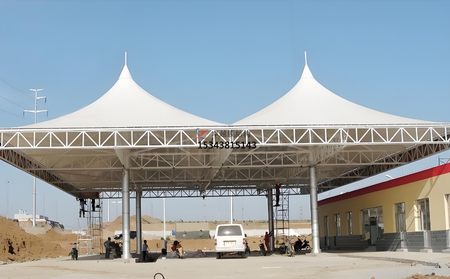 高速公路服務(wù)區(qū)加油站:高速公路服務(wù)區(qū)加油站車(chē)流量大,對(duì)設(shè)施的耐用性和快速施工要求較高。膜結(jié)構(gòu)頂棚憑借其長(zhǎng)使用壽命、便捷施工等優(yōu)勢(shì),能在短時(shí)間內(nèi)完成建設(shè),滿(mǎn)足服務(wù)區(qū)快速投入使用的需求。同時(shí),其美觀的造型也能為長(zhǎng)途奔波的司乘人員帶來(lái)良好的視覺(jué)感受,提升服務(wù)區(qū)的整體形象。