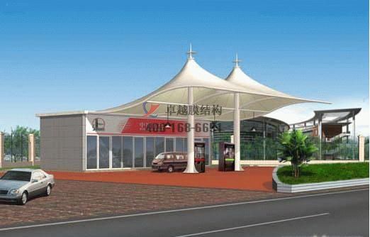 項目結(jié)構(gòu)形式:骨架式膜結(jié)構(gòu)加油站加氣站,四面自然排水,一側(cè)與站房搭接。