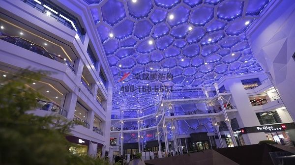 工程結(jié)構(gòu)形式:骨架張拉商場頂棚膜結(jié)構(gòu)