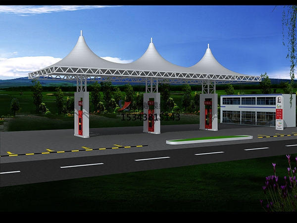 項目結(jié)構(gòu)形式:骨架式膜結(jié)構(gòu)加油站