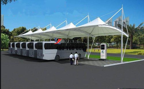 膜結(jié)構充電站樁車棚設計、施工案例,我們在忻州承接了忻州市公共汽車公司、忻州新能源眾泰汽車4s店、忻州市汽車站