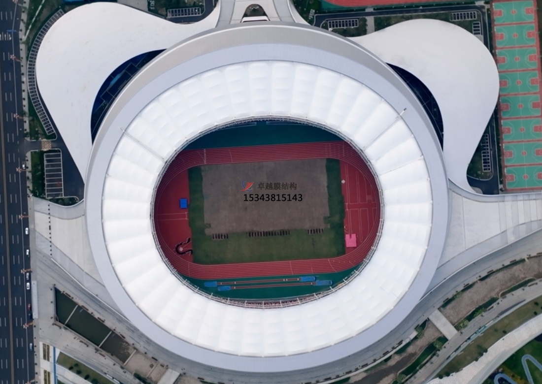 膜結(jié)構(gòu)體育看臺(tái)具有獨(dú)特魅力,膜結(jié)構(gòu)體育看臺(tái)的核心在于其采用的膜材料,這種材料以其輕質(zhì)、高強(qiáng)、耐候、自潔等特性著稱。通過精密的計(jì)算與巧妙的設(shè)計(jì),膜材料被張拉成各種流線型或幾何形態(tài),與支撐結(jié)構(gòu)(如鋼架、鋼索)完美融合,形成既穩(wěn)定又美觀的看臺(tái)結(jié)構(gòu)。這種結(jié)構(gòu)不僅輕盈飄逸,仿佛與天空融為一體,而且能夠隨著光線的變化呈現(xiàn)出不同的色彩與光影效果,為體育場(chǎng)館增添了幾分神秘與浪漫。