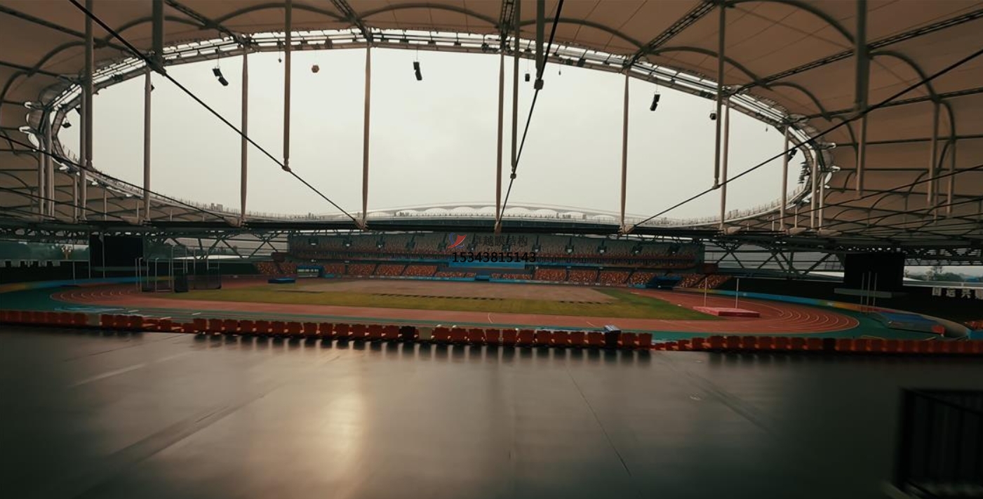 此外,膜結(jié)構(gòu)看臺(tái)還具備出色的聲學(xué)效果。膜材料對(duì)聲音的反射與吸收特性,使得看臺(tái)內(nèi)的聲音分布更加均勻,觀眾能夠清晰地聽到比賽現(xiàn)場(chǎng)的每一個(gè)細(xì)節(jié),無論是運(yùn)動(dòng)員的奔跑聲、球與地面的撞擊聲,還是觀眾的歡呼聲,都能得到完美的呈現(xiàn)。