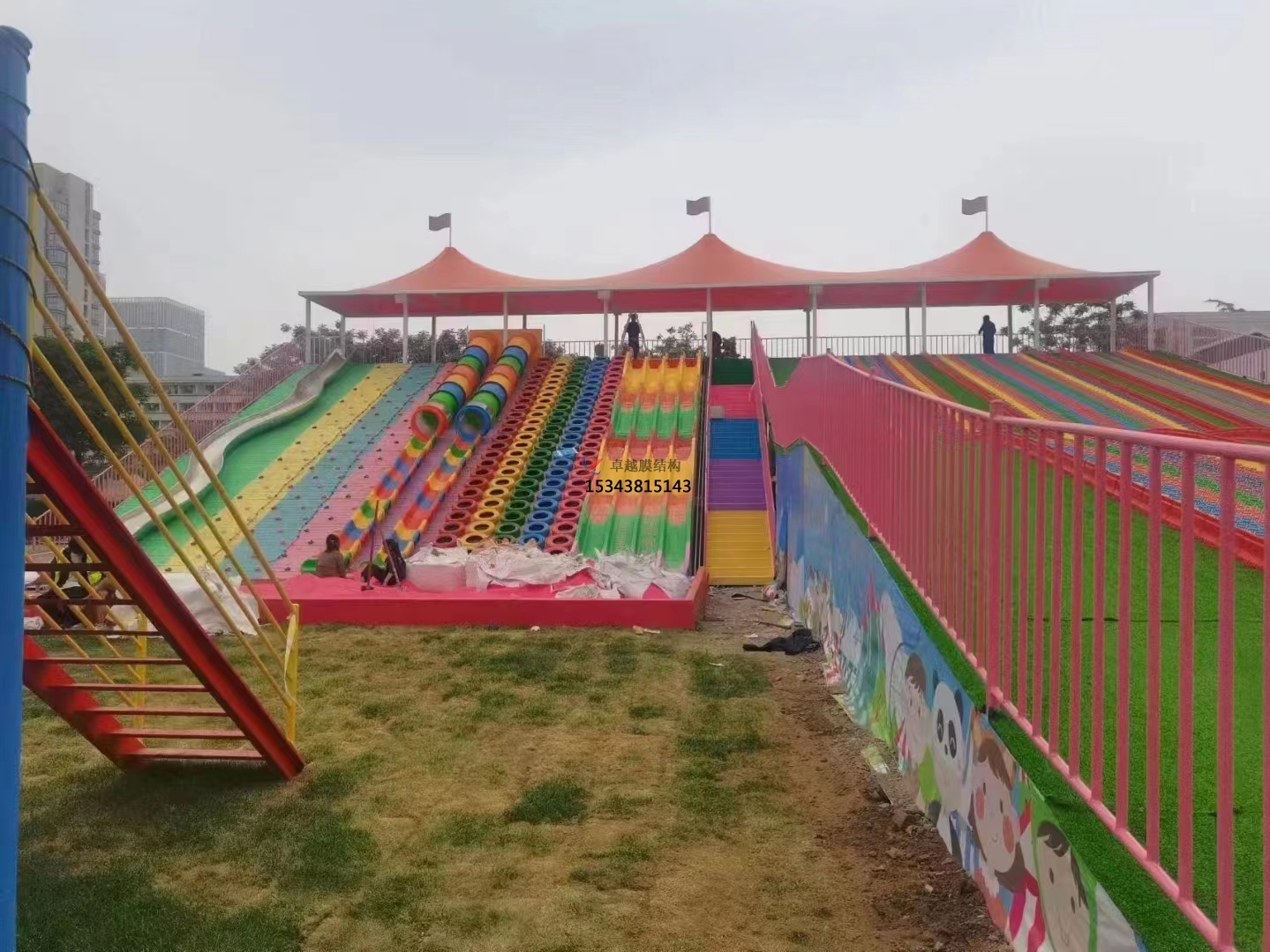 濮陽彩虹滑道游樂設備紅色遮陽棚結構設計生產(chǎn)