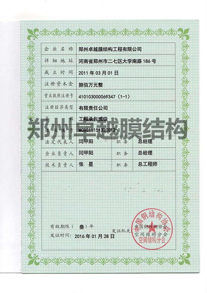 膜結(jié)構(gòu)制作二級資質(zhì)