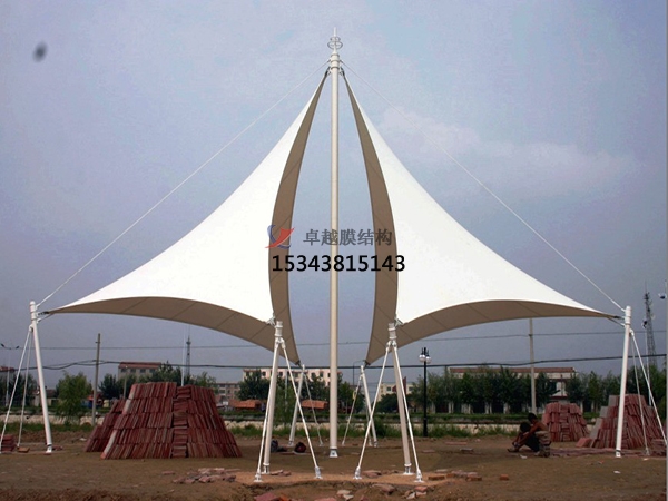 一個(gè)城市的中心區(qū)反映一個(gè)城市的地理風(fēng)貌和民族風(fēng)情,同時(shí),也是一個(gè)城市文化發(fā)展程度的標(biāo)志。而景觀設(shè)計(jì)要求其具有廣泛的可讀性、雅俗共賞,既有超凡脫俗的藝術(shù)價(jià)值,又能使大眾喜聞樂見與大眾息息相通。膜結(jié)構(gòu)以其輕盈飄逸的造型、柔美并帶有力量的曲線和大跨度和大空間的鮮明個(gè)性和標(biāo)識(shí)性,應(yīng)用于城市小品設(shè)計(jì)中。