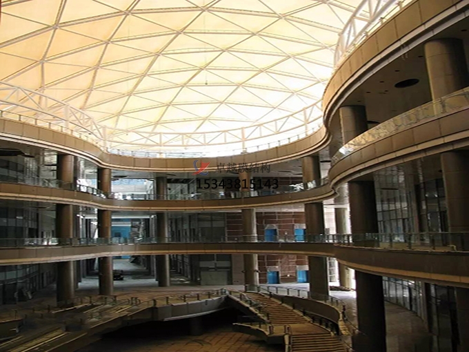 商業(yè)街膜結(jié)構(gòu)有何特色?一般來(lái)說(shuō)主要是透光性、柔性、安全性、漂亮以及抵擋氣候等特色。接下來(lái)簡(jiǎn)單的介紹一下,商業(yè)街膜結(jié)構(gòu)透光性可認(rèn)為商業(yè)街提供所需的照度,這對(duì)于商業(yè)街節(jié)能十分重要。商業(yè)街膜結(jié)構(gòu)不是剛性的,其在風(fēng)荷載或雪荷載的作用下會(huì)發(fā)生變形。依照現(xiàn)有的各國(guó)標(biāo)準(zhǔn)和指南設(shè)計(jì)的的輕型張拉膜結(jié)構(gòu)具有滿足的安全性。商業(yè)街膜結(jié)構(gòu)的獨(dú)特外形表現(xiàn)了修建自身的自然美感。商業(yè)街膜結(jié)構(gòu)的一個(gè)重要作用便是抵擋各種氣候改變(如日曬、雨淋、風(fēng)雪等)對(duì)其內(nèi)部空間的影響,堅(jiān)持商業(yè)街內(nèi)部的舒適性。