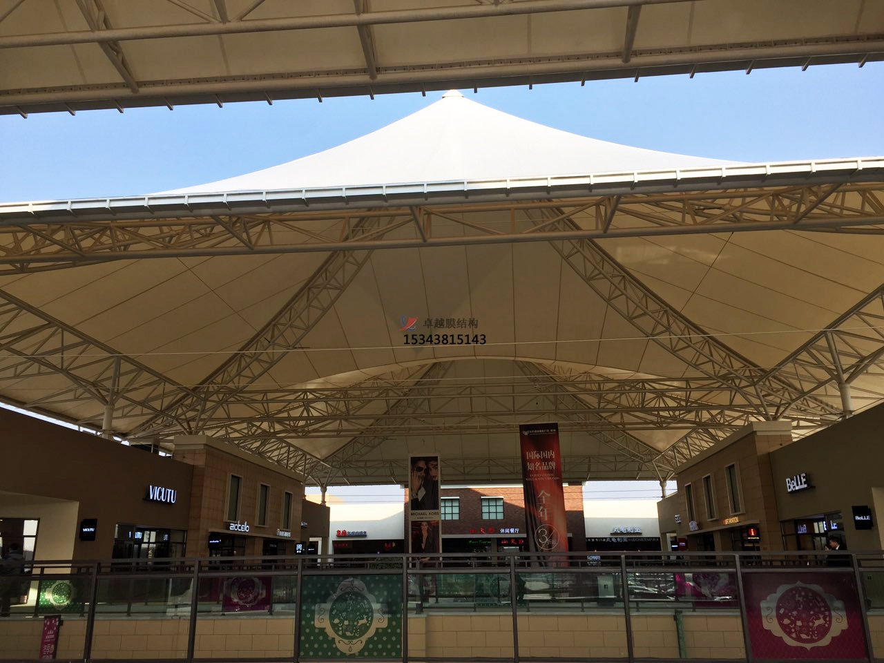 商業(yè)街在城市中占有相當大的比重。商業(yè)街的建筑與環(huán)境是城市文明的窗口,代表著物質(zhì)文明和精神文明的水平,同時,也是景觀環(huán)境的重要組成部分。張拉膜輕巧別致極具現(xiàn)代化風格,且易于安裝移動,在商業(yè)街設計中得以廣泛應用。