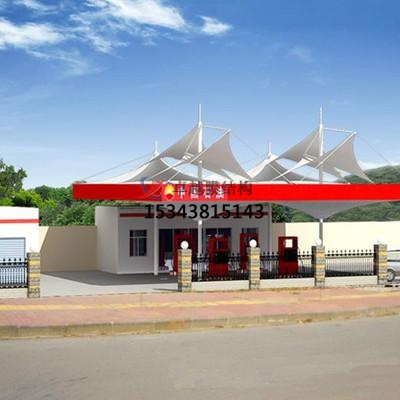 膜結(jié)構(gòu)加油站的柔性使其在任一荷載作用下均以有利的形狀承載。當(dāng)然,結(jié)構(gòu)的安置和形狀要根據(jù)荷載狀況來(lái)進(jìn)行規(guī)劃和調(diào)整。規(guī)劃要確何膜面與其輔助結(jié)構(gòu)和諧工作,以防止力在膜面或輔助結(jié)構(gòu)上會(huì)集而達(dá)結(jié)構(gòu)破壞的臨界值。