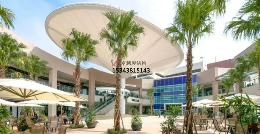 別看膜結構看似輕盈柔弱,實際上它卻擁有著出色的力學性能。它能夠承受一定程度的風雪荷載、風荷載等自然外力,并且具有良好的自潔性,經過特殊處理的膜材表面能夠在雨水的沖刷下自動清潔灰塵和污漬,保持外觀的整潔美觀。此外,膜材還具備較好的防火、防腐、耐老化等性能,確保了景觀棚在長期使用過程中的穩(wěn)定性和安全性。