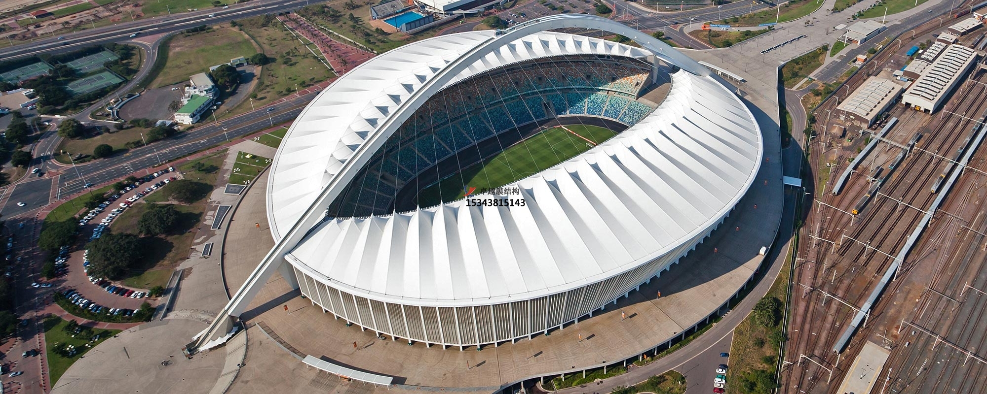 索膜結(jié)構(gòu)體育場(chǎng)館核心結(jié)構(gòu)特性:索膜結(jié)構(gòu)由高強(qiáng)度柔性膜材(如PTFE、ETFE)與鋼索、桁架等加強(qiáng)構(gòu)件組成,通過(guò)預(yù)張應(yīng)力形成空間曲面,兼具輕量化與大跨度優(yōu)勢(shì)。在技術(shù)方面,具有自重輕、透光性和造型靈活等特點(diǎn)。膜材密度低,可大幅減輕主體結(jié)構(gòu)荷載,自然光滲透減少照明能耗,造型靈活,可實(shí)現(xiàn)復(fù)雜曲面設(shè)計(jì)(如馬鞍形、擬合圓形)。