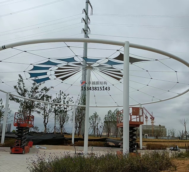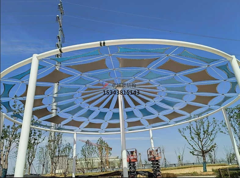 項(xiàng)目地點(diǎn):湖北省孝感市孝南區(qū)大智路與槐蔭大道交叉口鄧家河公園內(nèi) 展開(kāi)面積:244㎡ 膜材型號(hào):PVDF-1050G-5000N天藍(lán)色膜灰色膜" />