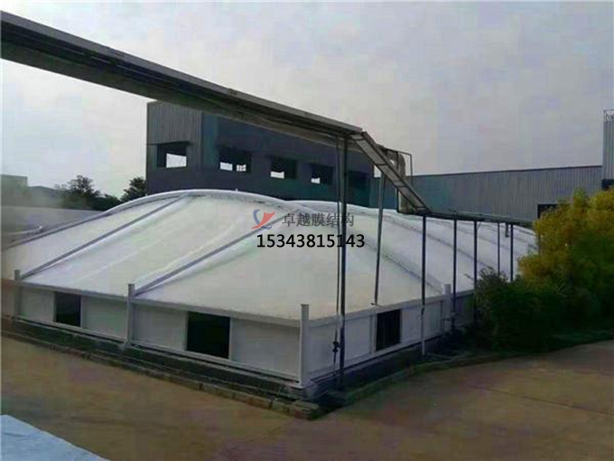 2.確認(rèn)膜材的品種:污水池加蓋除臭選用的膜材有許多中,應(yīng)根據(jù)池體的跨度挑選適宜的膜材才干達(dá)到預(yù)期的作用.一般,關(guān)于大跨度而言,選用污水池專用膜材氟碳纖維膜比較適宜,因?yàn)檫@種膜材具有很強(qiáng)的抗腐蝕能力,能對(duì)池內(nèi)廢氣起到抗腐蝕的作用,無形中保證了膜材的使用壽命;
