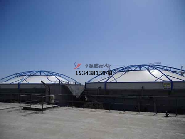 污水池加蓋主要分為三種加蓋形式:普通碳鋼骨架+陽光板、不銹鋼骨架+玻璃鋼板、反吊膜。普通碳鋼骨架+陽光板、不銹鋼骨架+玻璃鋼板為傳統(tǒng)加蓋方式,易被廢臭氣腐蝕,且胯度小,密封性差,已逐漸被市場淘汰。