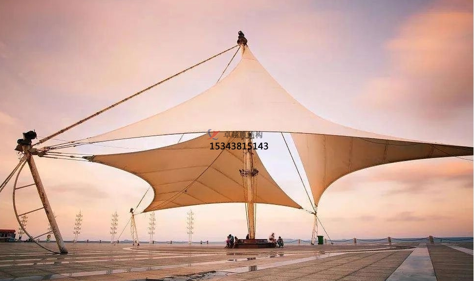 這些膜材共有的特性賦予了景觀膜結(jié)構(gòu)一種輕盈而靈動(dòng)的視覺效果。相較于傳統(tǒng)的建筑材料,膜材的重量微乎其微,卻擁有驚人的張力承受能力,宛如一張堅(jiān)韌的“皮膚”,能夠被拉伸成各種充滿創(chuàng)意的形狀。這種輕質(zhì)特性不僅有效降低了基礎(chǔ)設(shè)施建設(shè)成本和施工難度,還使得膜結(jié)構(gòu)能夠在特殊地形或荷載限制嚴(yán)格的區(qū)域得以應(yīng)用,從而極大地豐富了景觀設(shè)計(jì)的可能性。