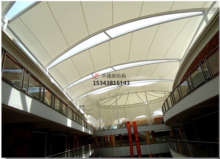 膜結(jié)構(gòu)中運(yùn)用的膜材一公斤每平方因?yàn)樽灾剌p,合理使其大部分軸向力搬運(yùn),更終使膜結(jié)構(gòu)適合在大空間和大跨度結(jié)構(gòu)體系列中。