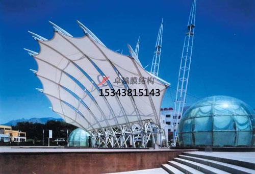 張拉膜景觀是建筑結(jié)構(gòu)中**發(fā)展起來的一種形式,它以性能優(yōu)良的織物為材料,或是向膜內(nèi)充氣,由空氣壓力支撐膜面,或是利用柔性鋼索或剛性支撐結(jié)構(gòu)將面繃緊,從而形成具有一定剛度、能夠覆蓋大跨度空間的結(jié)構(gòu)體系。