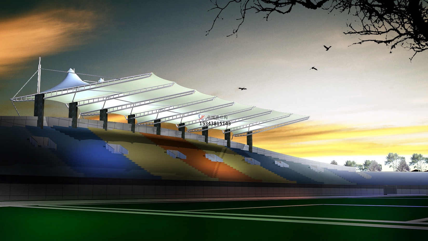張拉膜結(jié)構(gòu)的形狀由張力平衡條件決定,符合自然的膜結(jié)構(gòu)原理,是一種自然結(jié)構(gòu)。膜材輕質(zhì)高強(qiáng),與高強(qiáng)鋼索相結(jié)合,使受力體系簡介合理,大部分由軸力傳遞,使膜結(jié)構(gòu)能跨越大空間而形成開闊的無梁柱大跨度結(jié)構(gòu)體系,也就從根本上克服了傳統(tǒng)結(jié)構(gòu)在大跨度建筑上所遇到的問題,創(chuàng)造出巨大的空間。